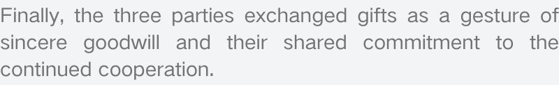最后,三方代表互赠礼物,以表诚挚的友好与合作意愿。