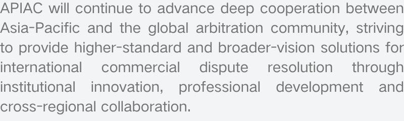 APIAC将继续致力于推动亚太地区与全球仲裁界的深度合作,通过制度创新、专业发展与跨区域协作,为国际商业争议解决提供更高标准、更广视野的解决方案。