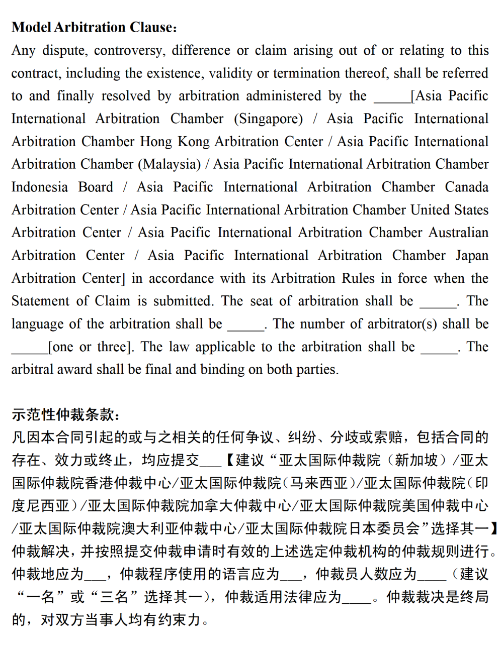 APIAC Model Clause